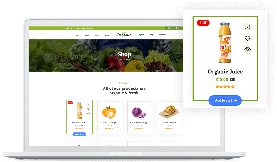 Build your organic store with Organio Purchase now. $59!